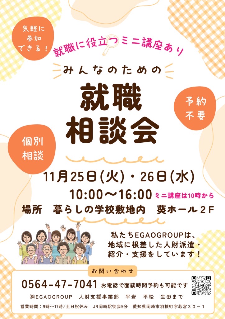 このたび、就職や働き方に関する個別相談のほか、就職活動に役立つミニ講座(各日10:00〜)を実施する「みんなのための就職相談会」を開催します。